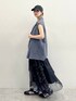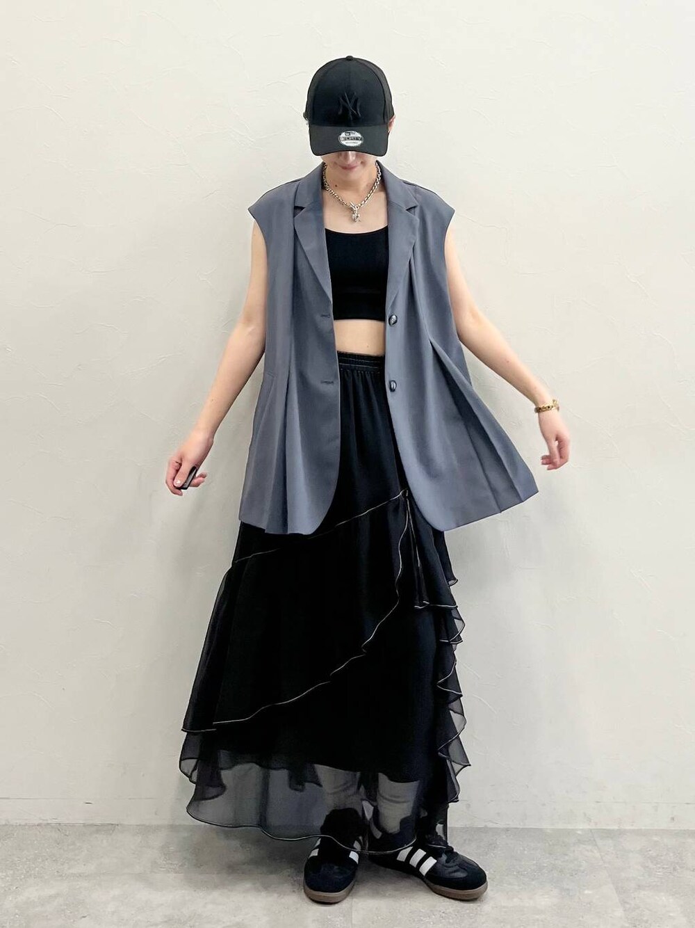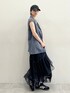 フリルのスカートだけどモード前するスタイリングに✨
