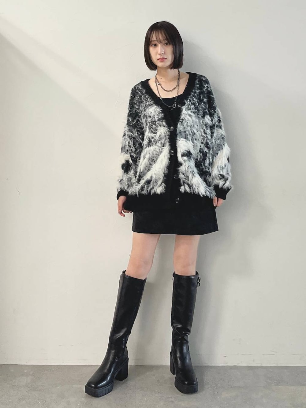 【カーディガン】 ・ブラック系カラーがシャギーでもモードに着られてかわいい! ・デニム合わせでカジュアルにするもよし、黒のボトム合わせでがっつりモードに着るのも良しです! ・ゆったりサイズなので、キャミ〜薄手のニットまで合わせられて長く着られます! 【スカート】 ・スエード見え素材の新しいミニスカートが登場! ・広がりすぎないシルエットで、どんなトップスを合わせてもすっきり見えるのがおすすめポイントです!