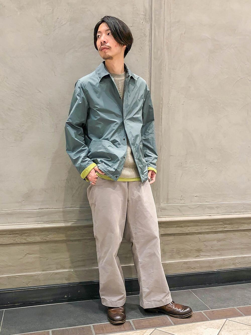 化繊のカバーオールや肩を落としたベスト、シャツスリーブのカットソーなど、今までありそうでなかったアイテムをメインにコーディネートしました。ジャストなサイズ感が今また新鮮なカバーオールは、ワイドなボトムスとの相性も◎。アーシーなカラーは、天然素材やニット地とも合わせやすくかさ張りにくいため、一日の寒暖差が高まる春には重宝しそうです。インナーはシンプルになりすぎないよう、ニットベストとロングスリーブでレイヤード。羽織りありとなしで手軽にイメージを変えられるので、シンプルになりがちなこれからの季節に使えるテクニックです。 ・ジャケット<UNITED ARROWS>:¥28,000 + tax [1122-133-5501] ・ニットベスト<UNITED ARROWS>:¥13,000 + tax [1118-136-0481] ・カットソー<ts(s)>:¥16,500 + tax [1169-599-5429]