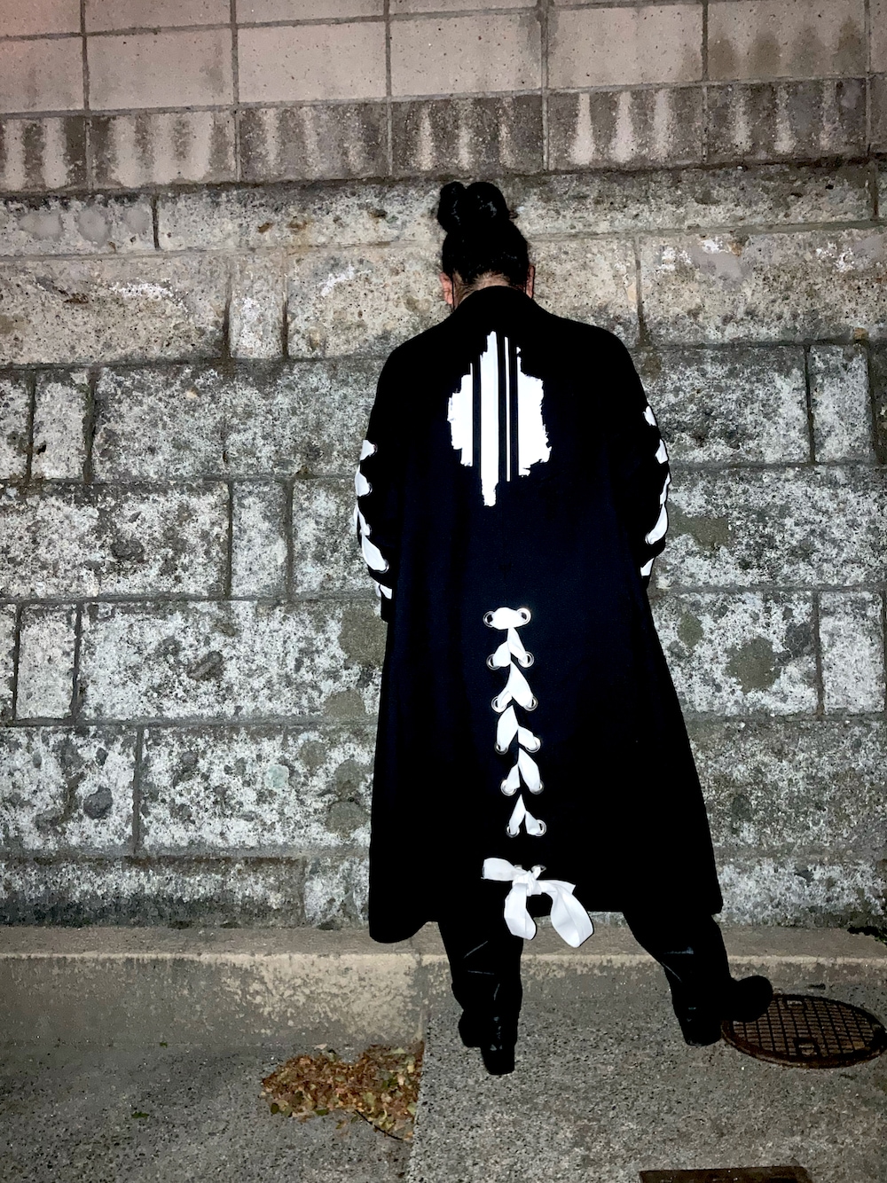 おはようございます☀ ご覧下さりありがとうございます😊 いいね、お気に入り、フォロー、フォルダイン誠に有難う御座います🙇 大変励みになっております😭🤲 オールブラックコーデです! アウターにバックプリントやところどころにリボンの飾りがあるコートを羽織りました。コート一枚羽織るだけでも存在感のあるコーデになっています。
