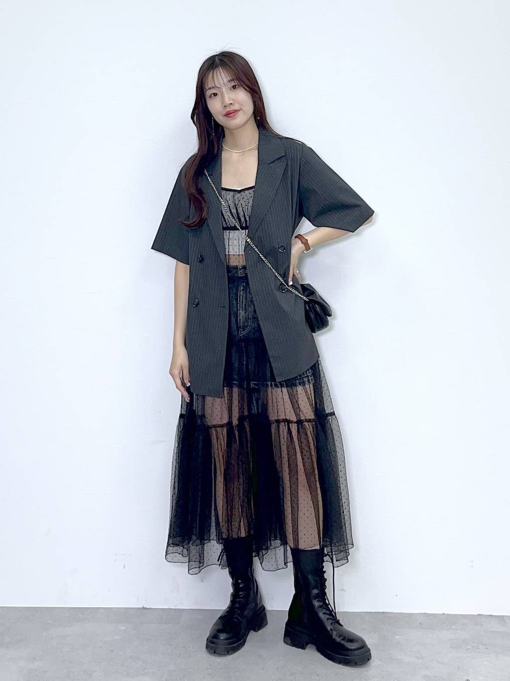 ご覧頂きありがとうございます!! 身長:168cm 骨格:ウェーブ 普段着用するサイズ:ミニボトムS,ロングボトムM 靴のサイズ:24.5cm(L) 【チュールレイヤードキャミワンピース】 レイヤードが出来るワンピースは今年のマストバイアイテム✨✨ ティアードにボリューム感がありすぎないのでカジュアルなアイテムとも相性バッチリ👍🏻💖✨ デニム×チュールが今年っぽ( ^^ )👍🏻 このコーデが可愛いなと思って頂けたら右下の💓お願いします🫶🏻 フォローもお願い致します👼🏻💫 Instagram↪︎ ((お洋服でお困りのことがあればdmください!!))