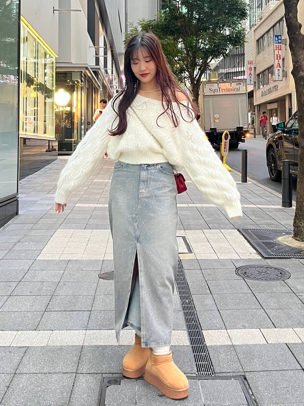 nae🍒(Heather ららぽーとTOKYO-BAY)のデニムスカート「ラインストーンDenimロングスカート 145374」を使ったコーディネート