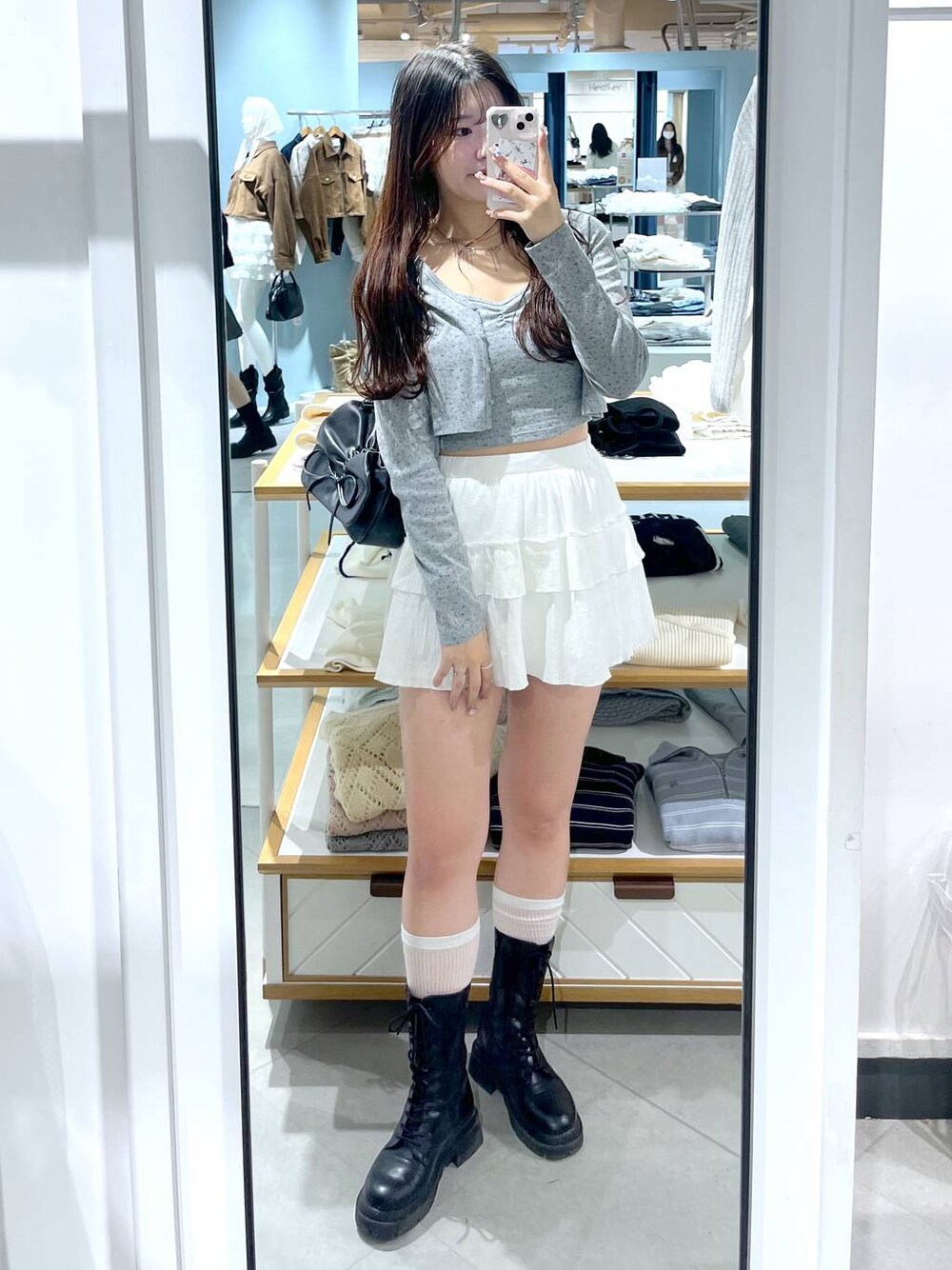 ご覧頂きありがとうございます!! 身長:168cm 骨格:ウェーブ 普段着用するサイズ:ミニボトムS,ロングボトムM 靴のサイズ:24.5cm(L) このコーデが可愛いなと思って頂けたら右下の💓お願いします🫶🏻 フォローもお願い致します👼🏻💫 Instagram↪︎ ((お洋服でお困りのことがあればdmください!!))