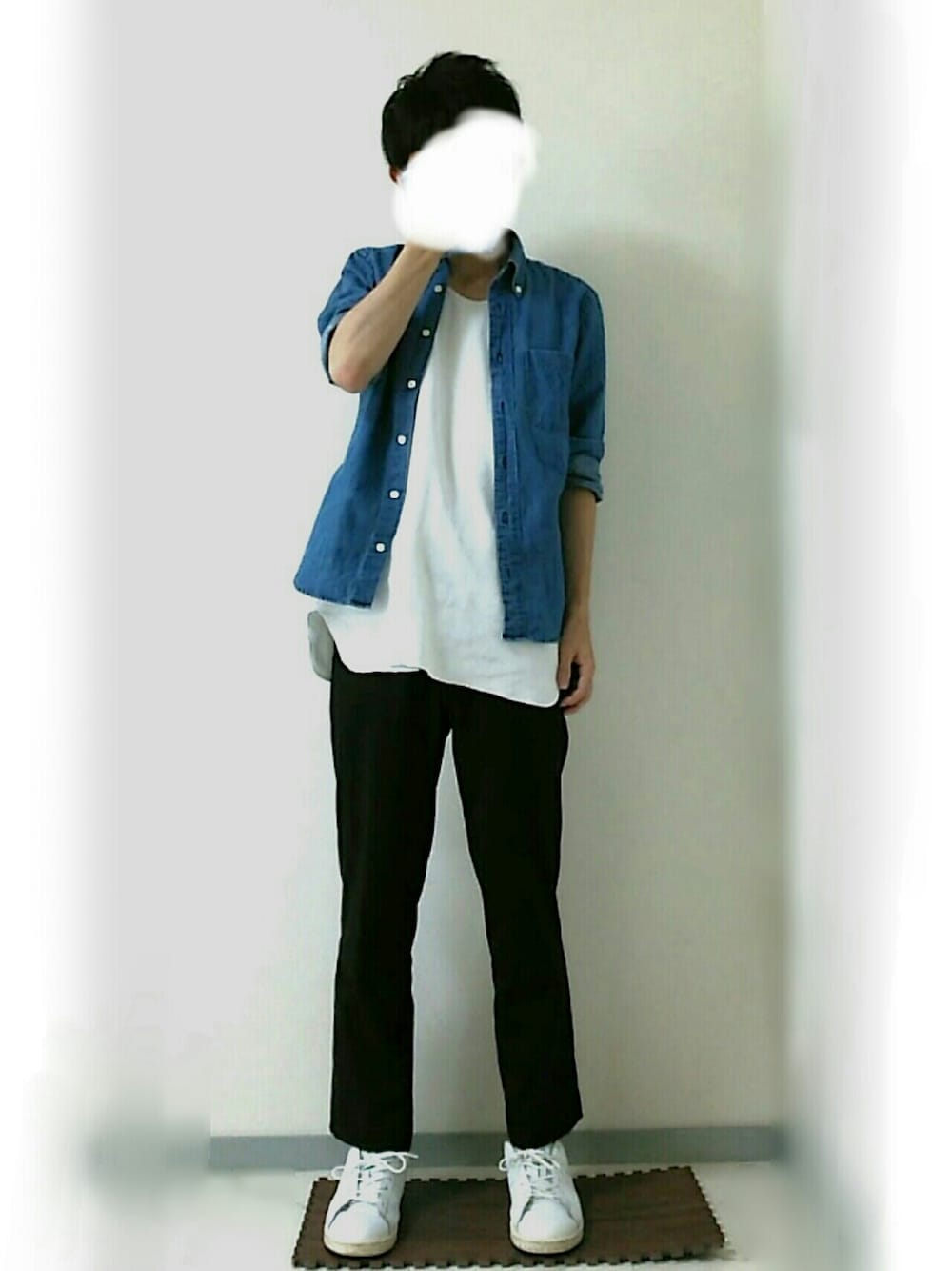 デニムシャツをロング丈のインナーに合わせてみました。インナーがゆったりしていて、風通しが良いです( ^ω^ ) シャツはBEAMS LIGHTSで売っていたセレクト品で、パンツはユニクロで昨年ワゴン価格になっていたものです。靴は黒靴と悩みましたが、明るさを出したかったのでスタンスミスをはいてみました🙋