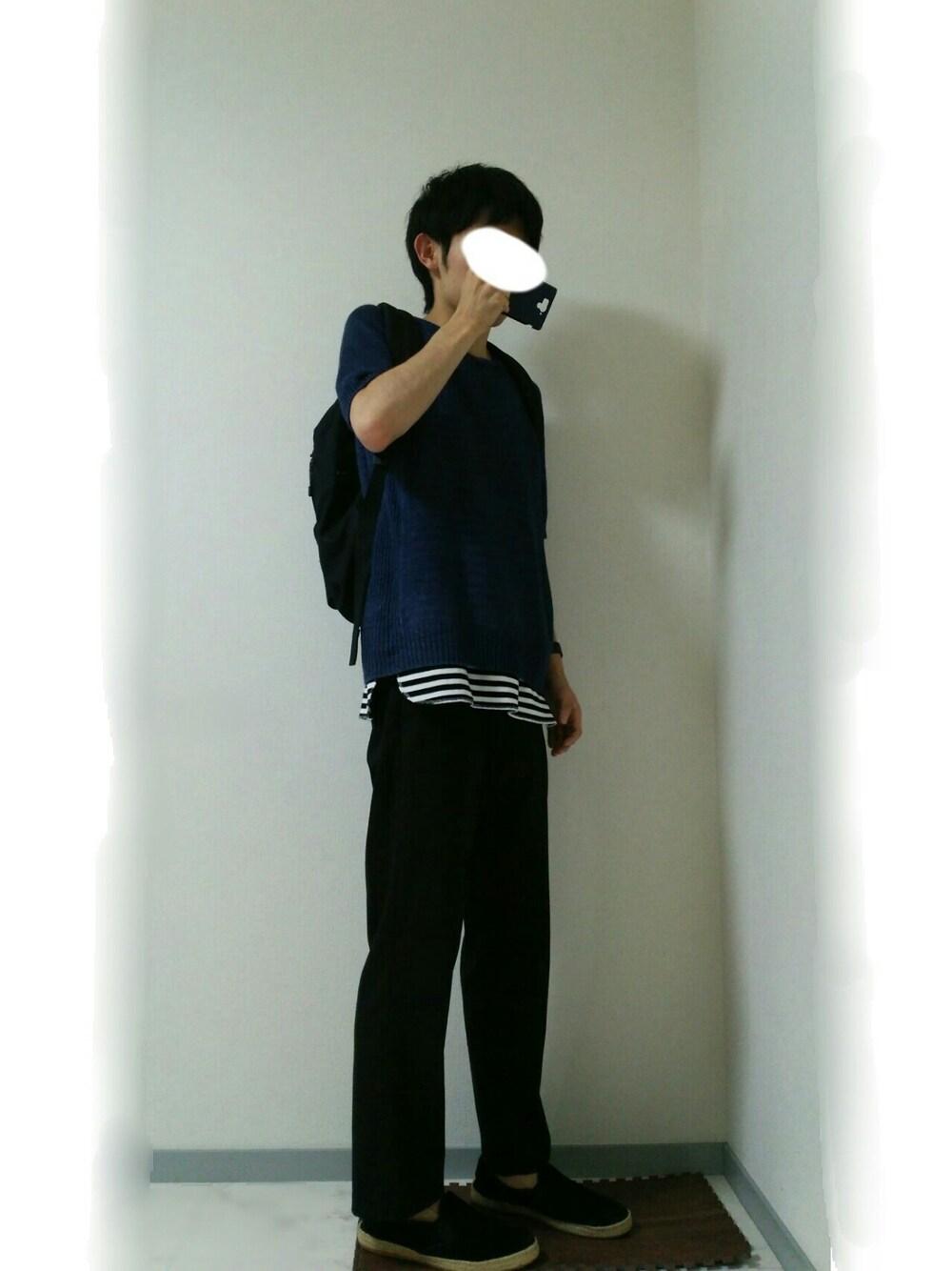 麻は夏に良いですね☺ ボーダーのインナーや靴で夏らしさを出してみました😃