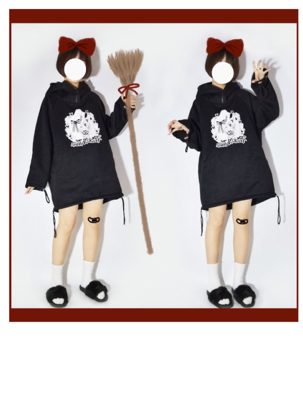 ブラック系のトップスを着用したレディースの秋コーディネートの1枚目の写真
