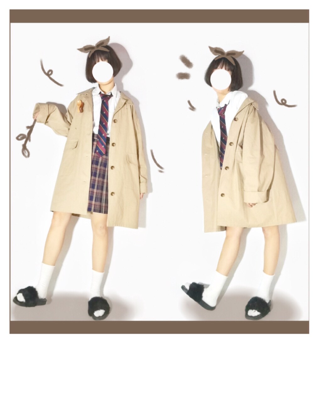 ベージュ系のトレンチコートを着用したレディースの秋コーディネートの1枚目の写真