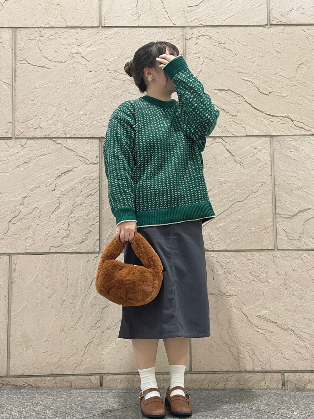 ⸜ 𝘵𝘰𝘱𝘴´- ⸝ バーズアイ柄は細かいので,派手すぎないけどしっかりコーデの主役になってくれます(。ᵕᴗᵕ。) + ⸜ 𝘣𝘰𝘵𝘵𝘰𝘮´- ⸝ セミタイトなシルエットのスカートは,オーバーサイズめなトップスと合わせるとメリハリのあるコーデに仕上げてくれます໒꒱
