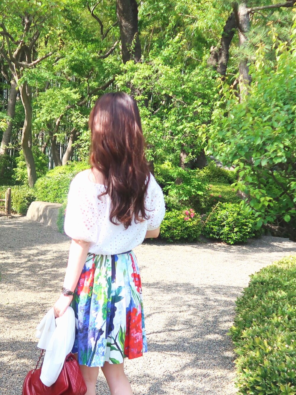 インスタ更新中💓💓natsu_mmer 久々の更新✨ 緑のキレイな季節がきた🌿🌼❤️ これからは楽チンなザラな白トップスが大活躍しそう😘 カラフルなスカートの色をベースにサンダルやbagも赤で統一❤️👠❤️