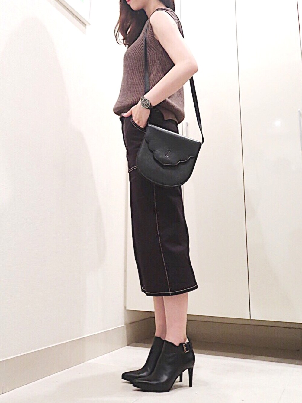 インスタ更新中😋👍💕 natsu_mmer🦄🍬🍭🎟🎀💕 すっかり秋服💕✨ ザラのタイトスカートが優秀😎😎 mamaから貰ったサンローランのbagもヴィンテージぽくてお気に入り😋😋 やはりカーキ✖️ブラックは秋のマスト🍁🍁ラフなトップスにタイトスカートの気分😙😙