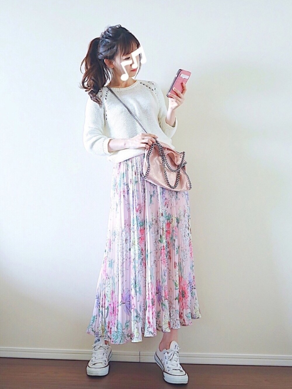春本番🌸🌸 ピンクが続きますが、桜の季節ということで🙌🙌 お気に入りのプチプラスカートの出番が増えてます😆😆👌 意外と合わせやすい❣️✨✨ スニーカーやローファーは春から夏に登場回数増えるタイプ☺️☺️