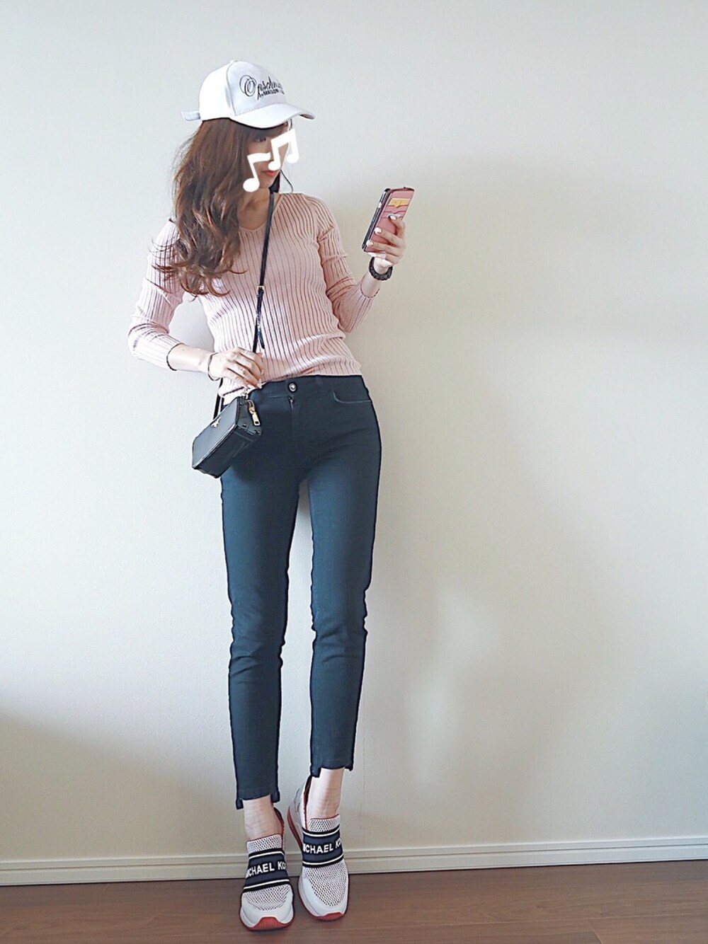 ピンク×ブラック好き💕😎💕♥︎ キャップに合わせてスニーカーでお出かけ👟💕履きやすくて少し傾斜も付いててほんとにお気に入り✨👍 お出かけにいい季節☀️✨✨✨