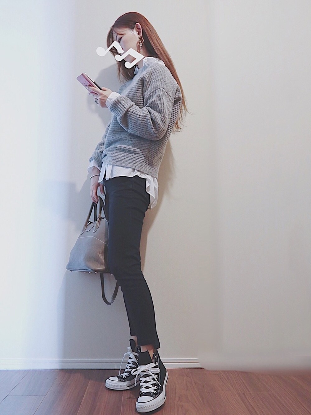 インスタは定期的に更新ちゅ👉 natsu_mmer💕💕 とうとう暖かくなってきた✨✨✨ ヒートテックをやめて久々に白シャツをニットにイン😘😘😘 ざっくりニットはそろそろ着納めかなーー😚😚😚 ちょーシンプルコーディネートだけどピアスでアクセント💜💜