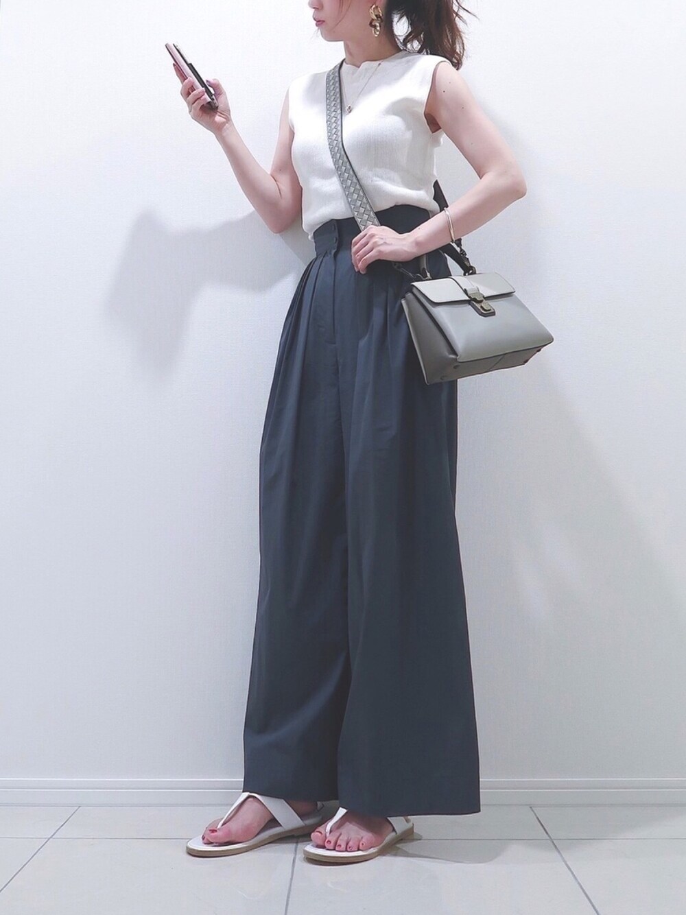 インスタも更新中💕 👉natsu_mmer💕 最近シンプルな色遣いにピアスでアクセントがブーム🥰🥰 ZARAのピアス愛用しすぎ🤣🤣 トップスもパンツも使いやすすぎて✨✨ ラペルラのサンダルお気に入り❤️