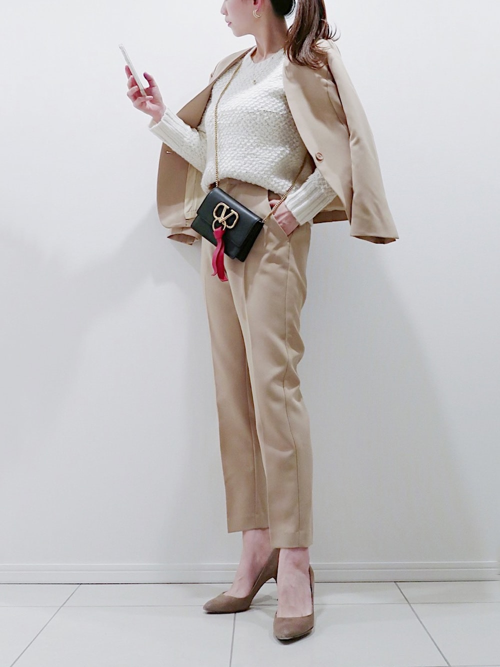 お洋服以外もインスタで更新中💕 👉natsu_mmer💕 ベージュの春らしいフォーマルセットアップ❤️ ニットや小物でカジュアルさ出たかな…😆 ママさんはこれから春に向けてセットアップ着るイベントもたくさんあるから便利かも💕💕 ちなみに、パンツのウエストは後ろがゴムになっててめっちゃ楽〜👍👍