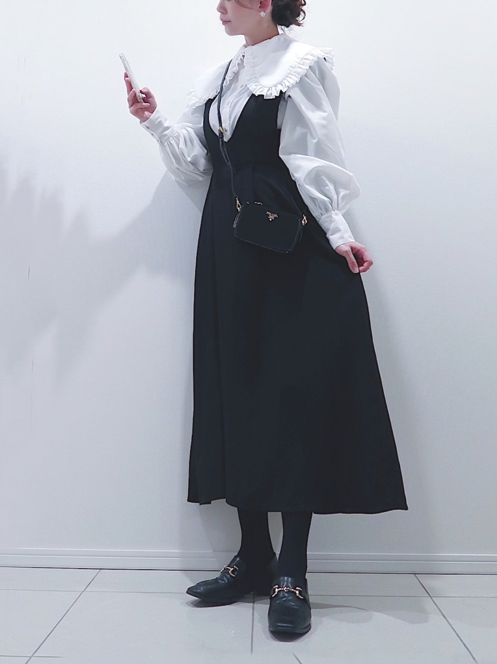 お洋服以外はインスタで更新中💕 natsu_mmer💕 ワンピース▶︎▶︎HANNE すっごく形がきれいなワンピはまずビッグカラーのブラウスに合わせて💕 ウエストのラインとか綺麗だからもっとシンプルに大人ぽく合わせても可愛い😍 この日はテラスでランチしたから念のためタイツはいてるけど、次はいらないな❣️❣️