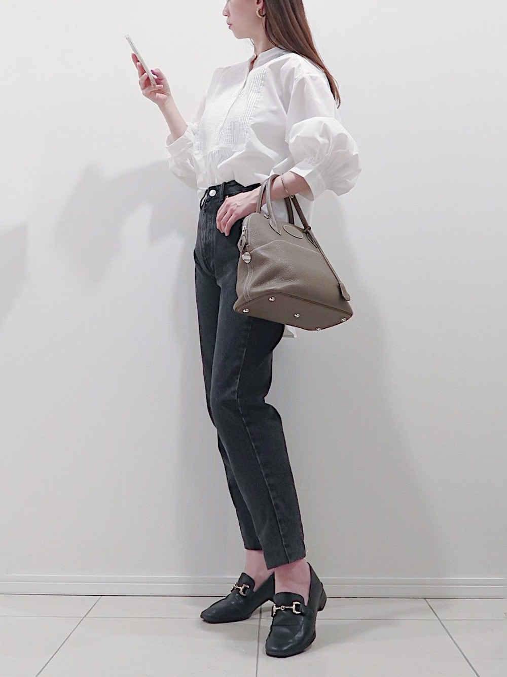 お洋服以外はインスタで更新中💕 👉natsu_mmer💕 ブラウス▶︎▶︎TOMOさんコラボ✨ ピンタックボリュームスリーブブラウス ふんわりしたお袖がすごく可愛い💕 胸元のデザインも綺麗〜💕 長めだけどサイドスリットがあるのでハイウエストのブラックデニムにインしてみた💕 ブラウスにデニムの季節なだなぁ😍❤️