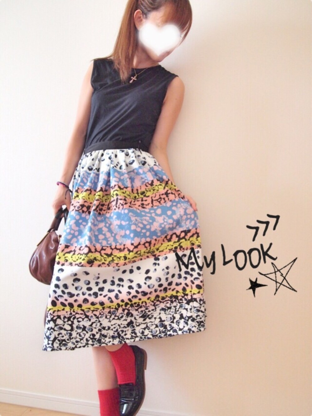 スカートお気に入り♪ このノースリーブも形が綺麗ですき! ネックレスはイタリアで買ったクロスひさびさに♡
