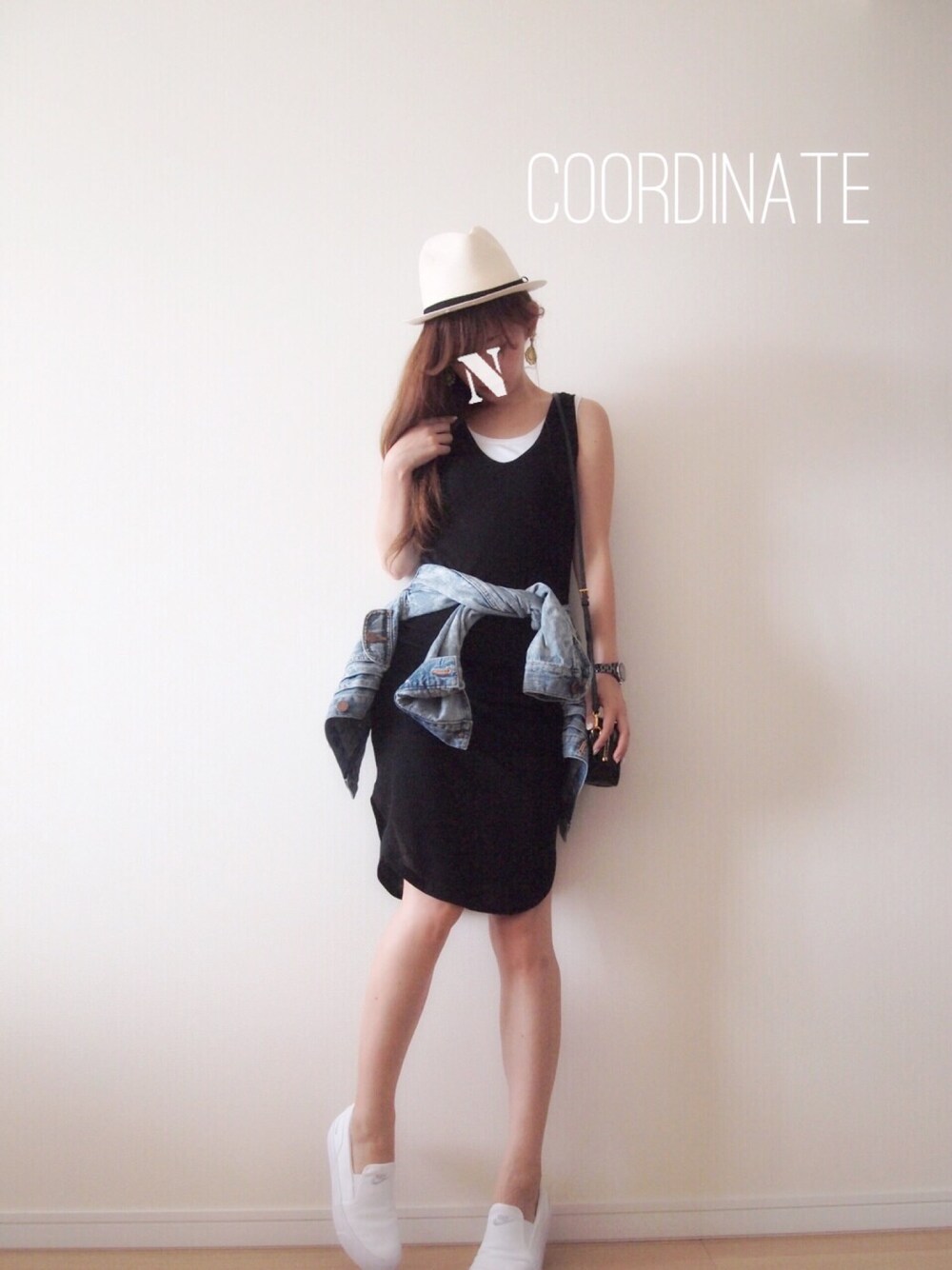 久々のブラックで🐼💕 でもとってもカジュアルな素材だから楽ちんです🍀🍀 H&Mのワンピ激安でしたーーwww そして安定のスリッポン😁😁🍀