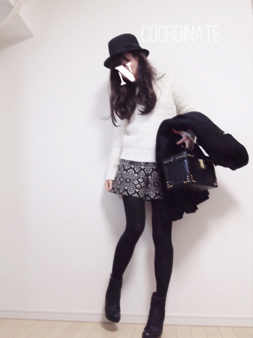 お決まりモノトーン😋😋⭐️ バナリパのニットふわふわでお気に入りー😍😍 ルシェルのバニティもお気に入り〜🎀🎀 今日は寒かったからもちろんタイツーーwww インスタ▷▷natsu_mmer🎀💕