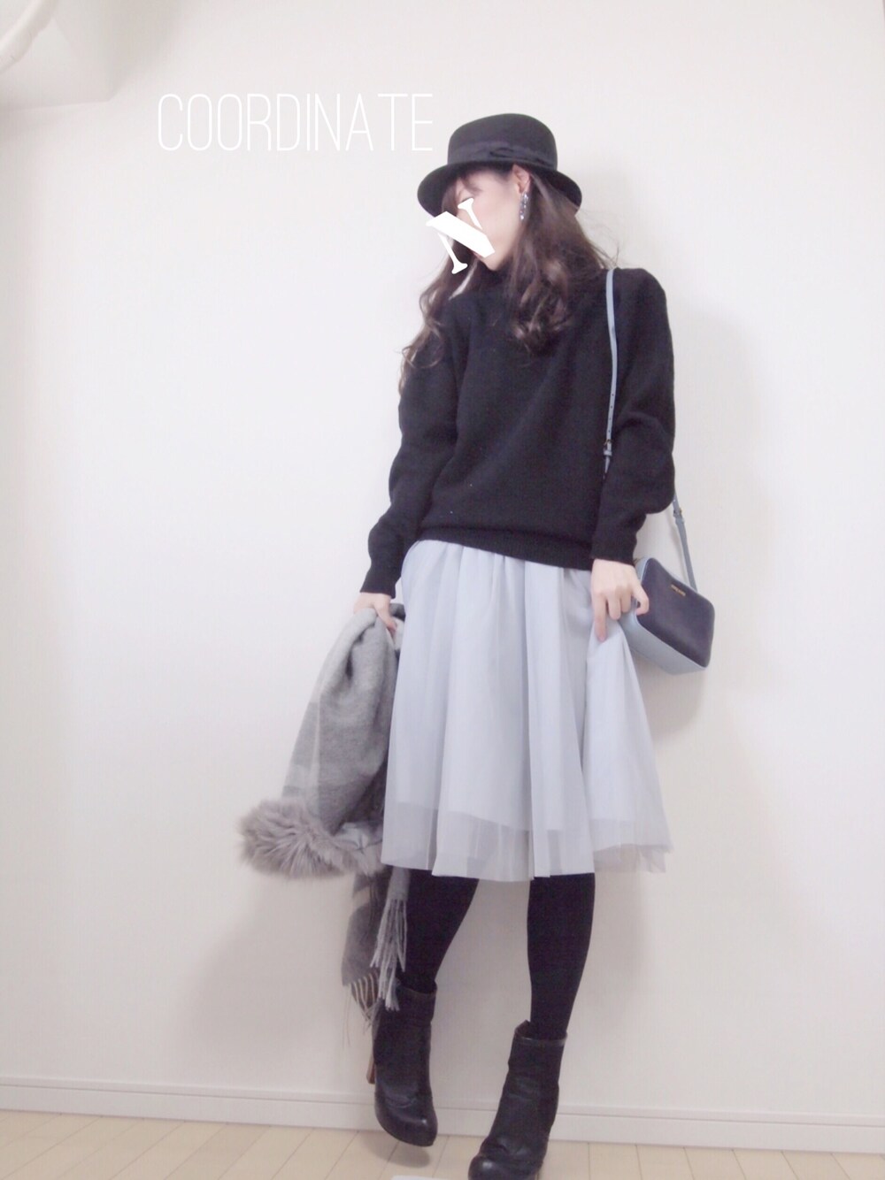 アイスブルー×ブラックでお出かけ💙💙💙 やはりこのコントラストが好き❤️ オーバーサイズのニットにチュールスカートふわふわー😁😁👍 インスタ▷▷natsu_mmer💕💕