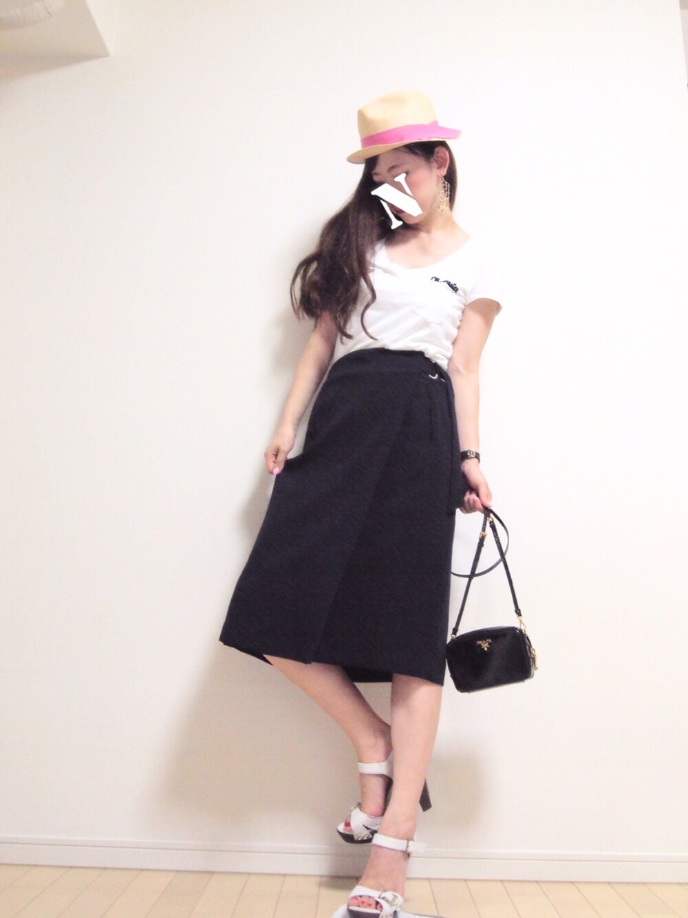インスタ更新中💕▷▷natsu_mmer🎀🦄 毎日暑すぎるのでラフなスタイルで☀️😉👍 ラップスカートに白T💕 ハットでさし色入れてお出かけ風にしてみました🌷💓👍 スカートの丈感がバランス取りやすい😉😉✨