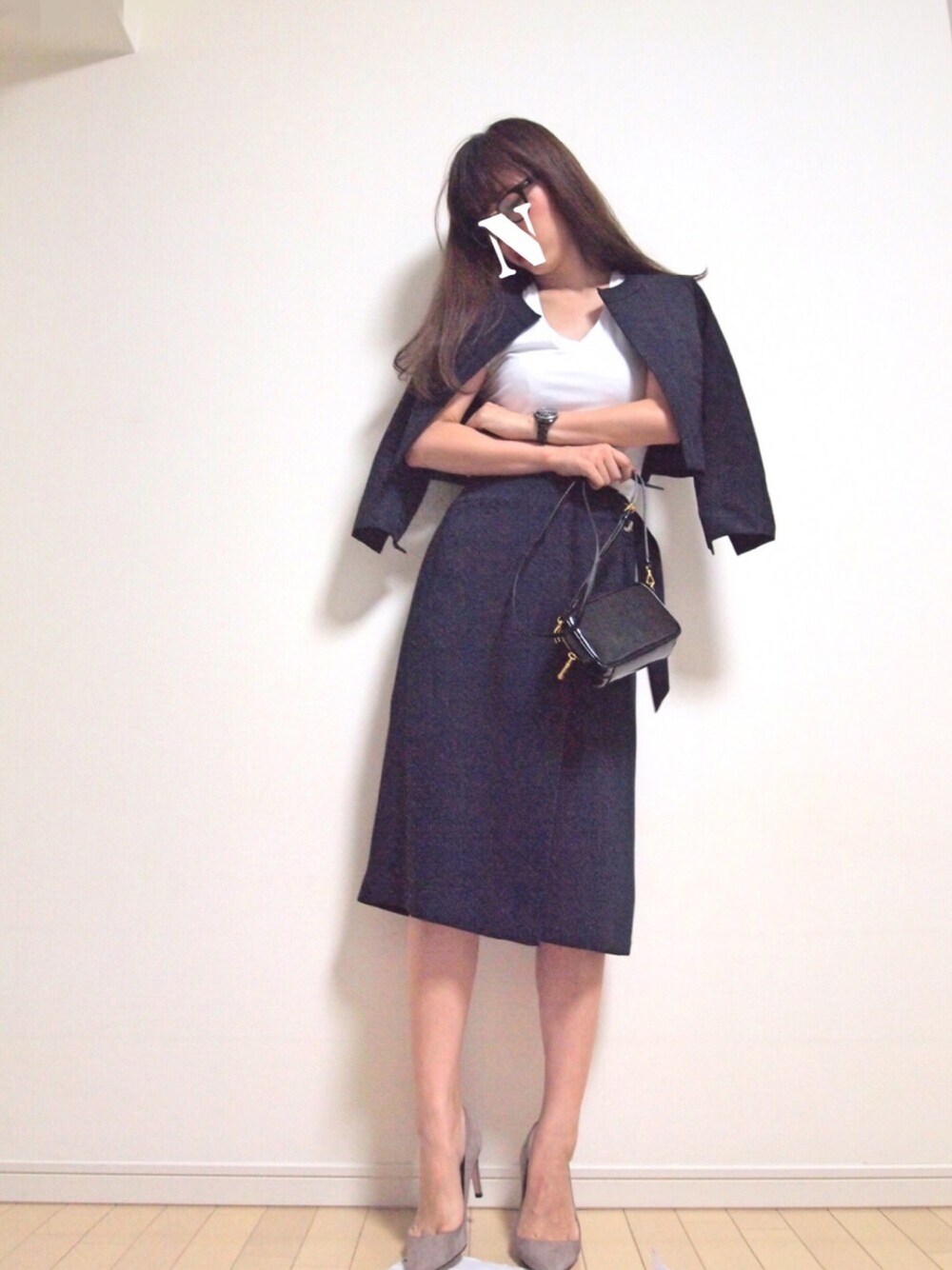 インスタ更新中💕▷natsu_mmer🎀🦄💕 秋を意識してネイビー多め💕 アクアガールのラップスカートにエストネーションのショート丈ジャケットでオトナな感じに😉✨ 引き続きエストネーションコーディネートです😁✨ シンプルで質の良いお洋服をさらりと着こなしたい💕 あ、前のコーディネートと同じポーズ…😅笑