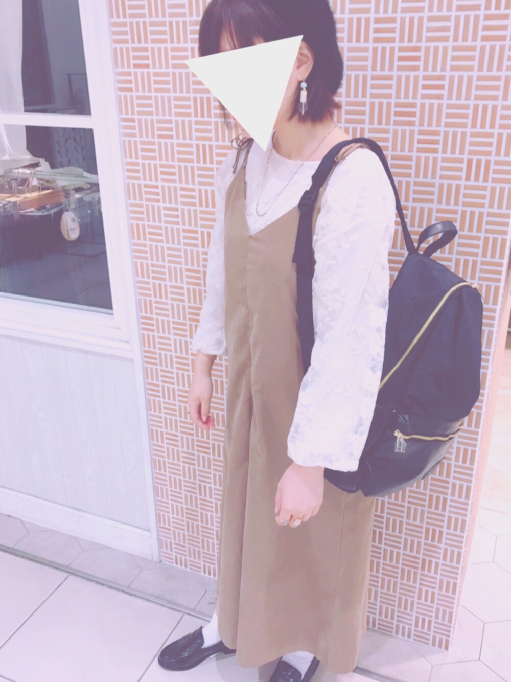 ピーチスキンロンパースで柔らかな印象に💓✨ 背負ってるリュックは今日より予約開始したLegato Largo(レガートラルゴ)の10ポケットリュックです🌷💫