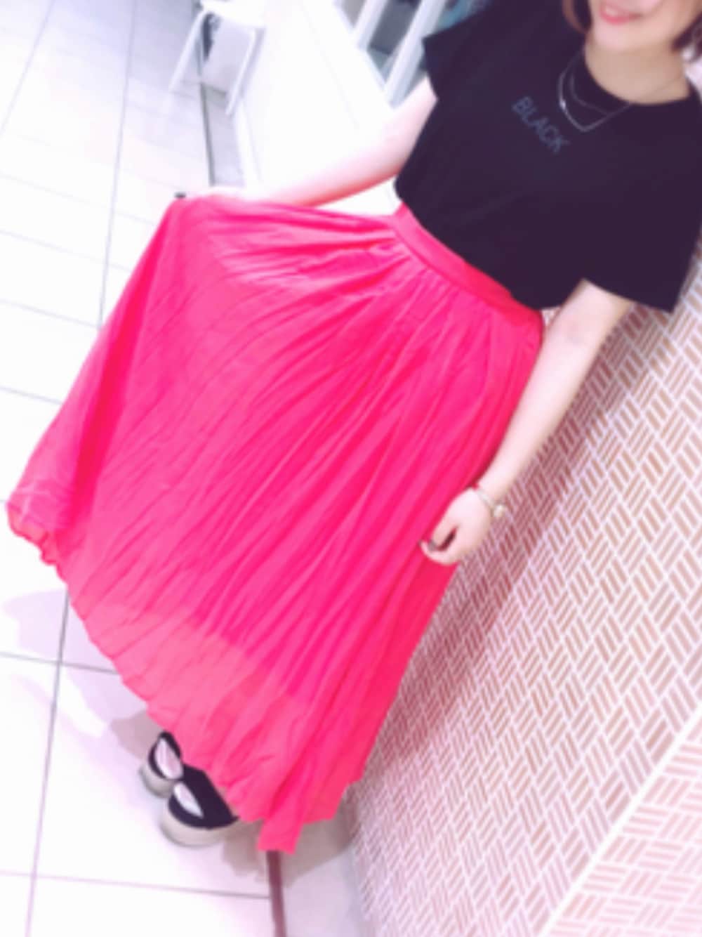 ブラックとピンク色のメリハリをつけて華やかなスカートを主役に🐈💓✨
