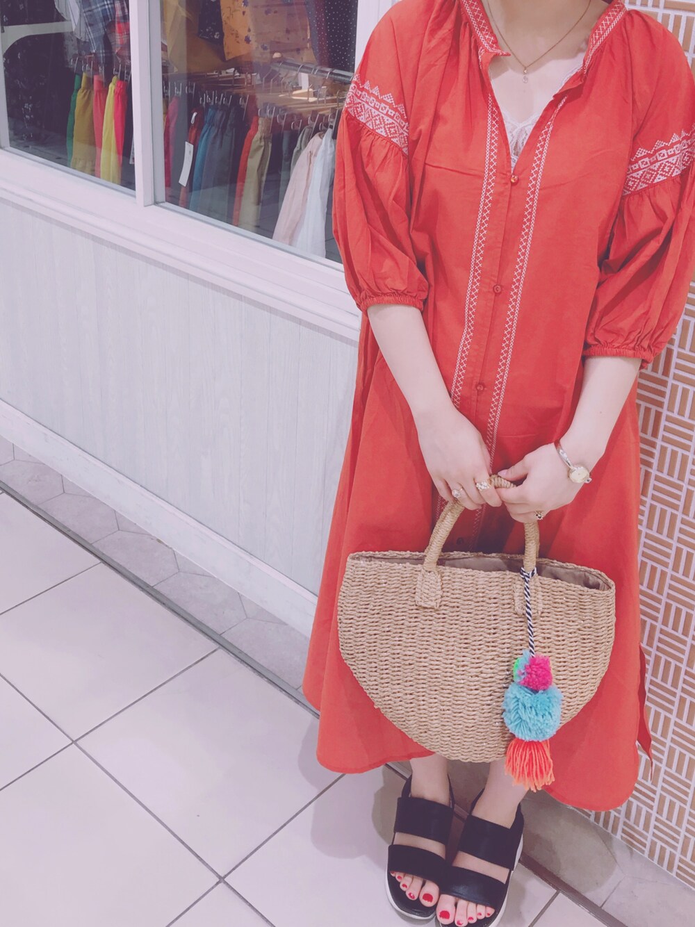 かわいい夏のワンピース🌈👗あえて夏にテラコッタのような秋カラーを着るのもいいですね🌻