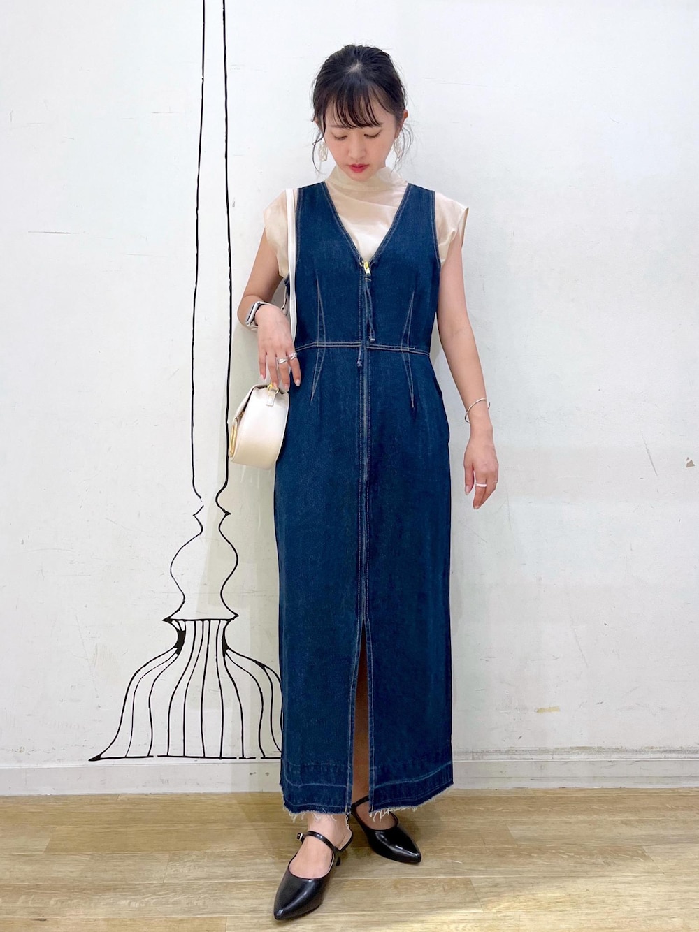 カジュアルなデニムジャンスカをきれいめに着回しました◎ スッキリシルエットのジャンスカなのでカジュアルはもちろんきれいめコーデにもおすすめです◡̈