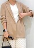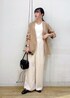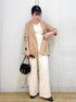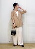 ベージュのジャケットを主役に、小物と洋服はモノトーンでまとめたコーディネートです◡̈ まだ暑さが残る時期でもタンクトップに合わせて着ることで秋の先取りコーデに◎