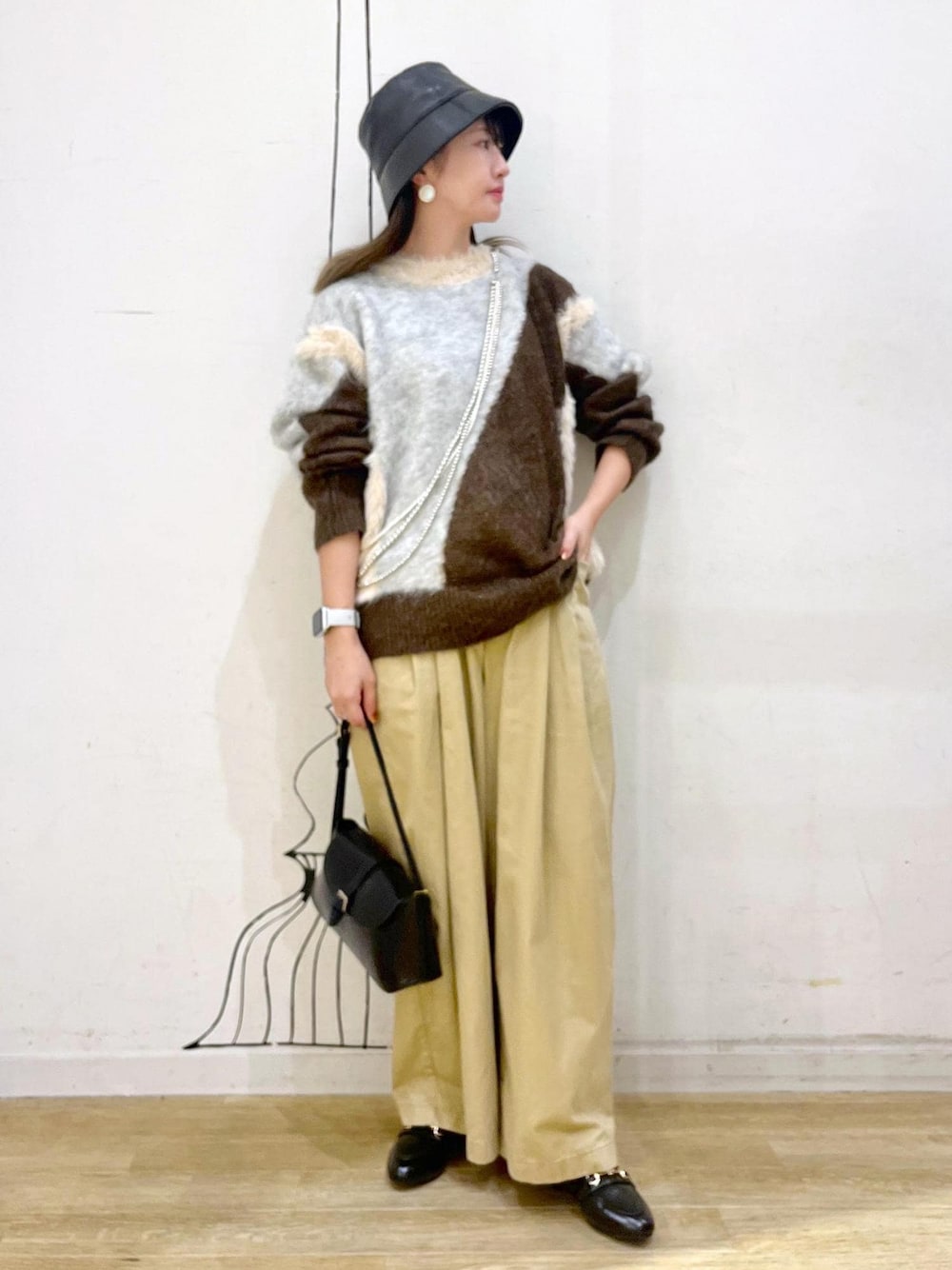 ブラウン系カラーでまとめたニットが主役のコーディネートです◎ ※アクセサリーは私物です