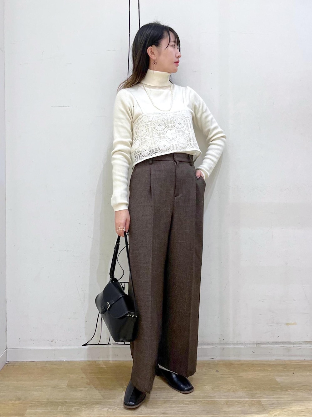 万能アイテムのタートルネックニットに同色のレースビスチェをレイヤードしたコーディネート◎ スッキリシルエットなのでアウターも選ばず着回せます◡̈