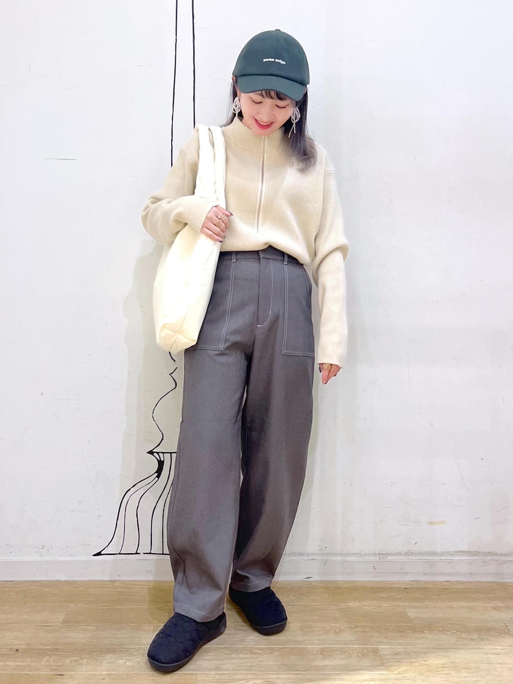 ジップニットとキルティングシューズで防寒しつつ動きやすい街歩きにおすすめのコーディネートです◎ ハイウエストのベイカーパンツでスタイルアップも叶います◡̈