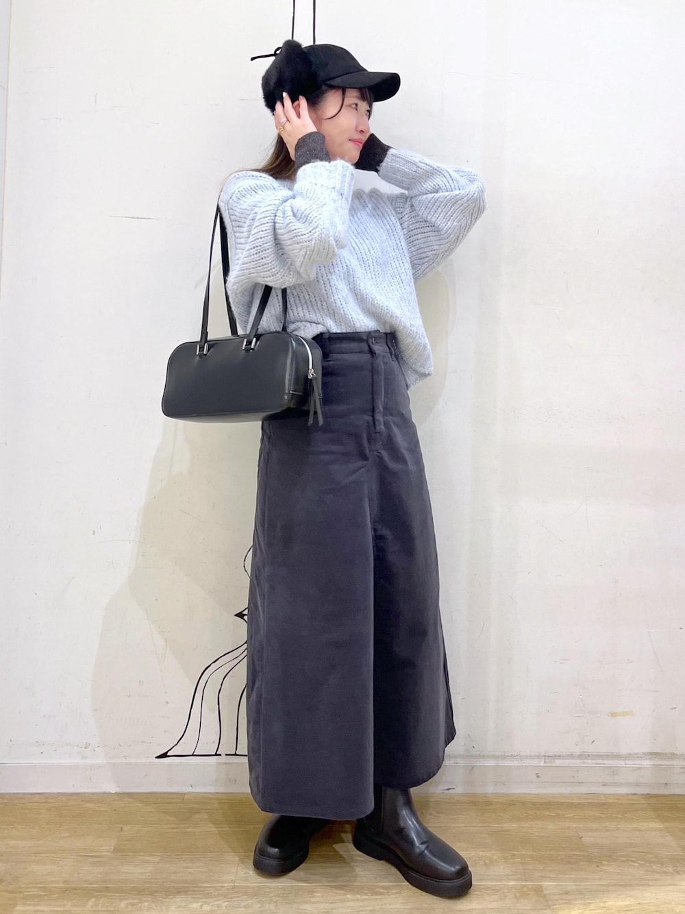 フェミニン見えするニットをカジュアルアイテムでまとめました◎ 袖口からラメニットをのぞかせたさりげないレイヤードがポイントです◡̈