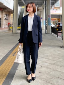 オフィス~セレモニーまで万能に着回せるセットアップコーデ。 シンプル合わせの時はコサージュなどで華やかさを足してあげるのがポイントです◡̈