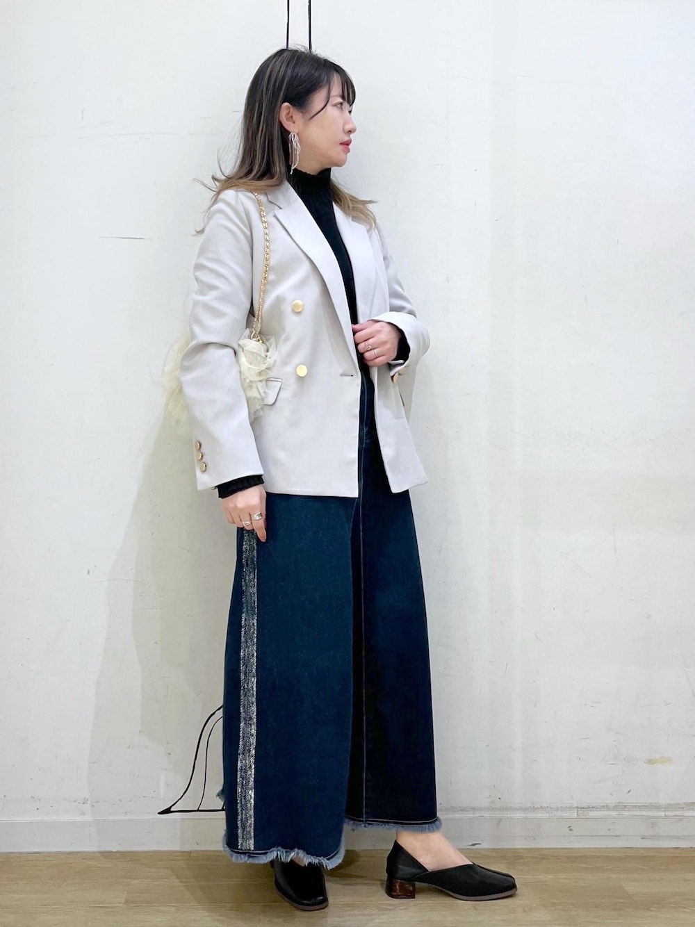 カジュアルからセレモニーまで使えるジャケットを使ったコーディネートです◎ 色味をモノトーンに抑えることでデニムを取り入れてもキレイめ見えします◡̈