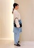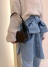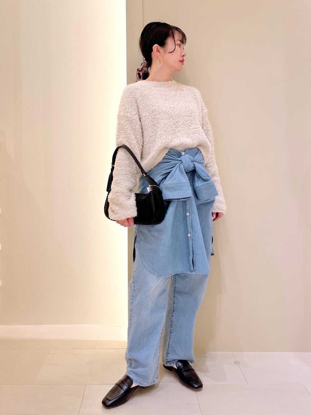 デニムシャツをスカート風にアレンジし、色味を合わせたデニムパンツでセットアップ風のコーディネートです◡̈ シンプルな組み合わせもアレンジでワンランク上の着こなしに◎