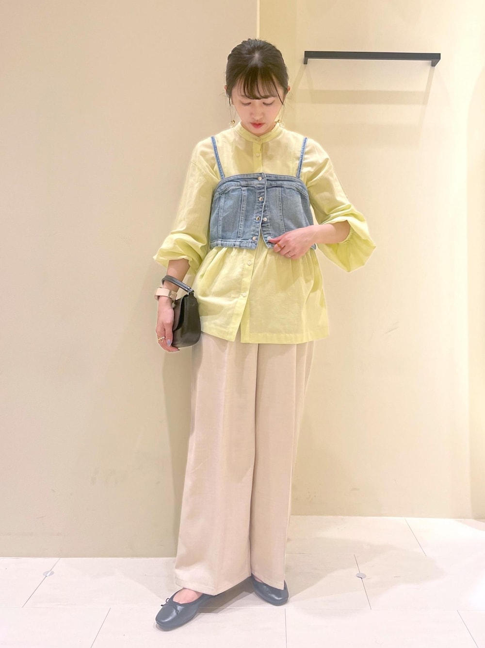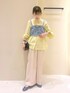 イエローのブラウスが華やかなレイヤードコーデ◎ 体型カバーはもちろん、ビスチェで目線upも狙えます◡̈