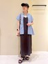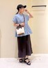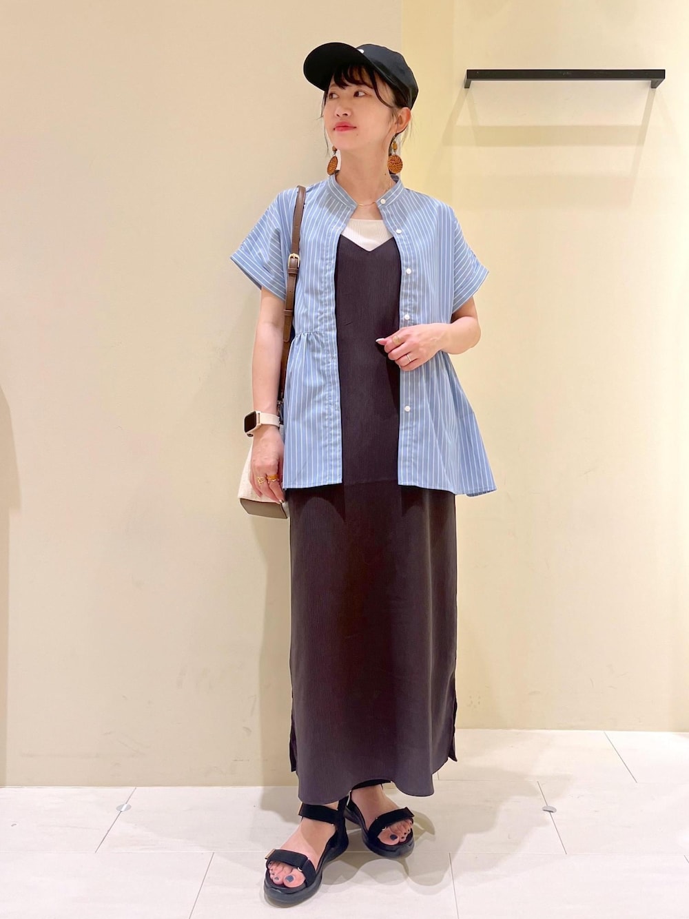 おしりまで隠れる丈のブラウスを羽織にして、 体型カバーが叶うワンピースコーデです◎