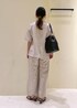 半袖ジャケットとワイドパンツの夏のオフィスにもオススメなセットアップコーデです◡̈