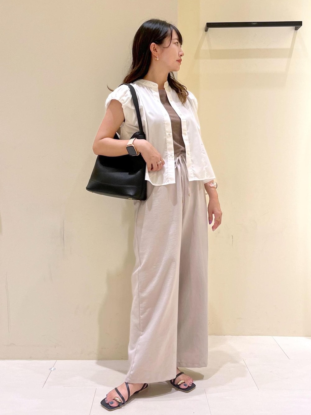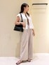 オンオフ兼用できるベーシックアイテムの着回し。 着丈の短いブラウスにハイウエストのワイドパンツで目線を挙げるコーディネートです◡̈