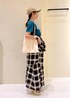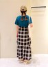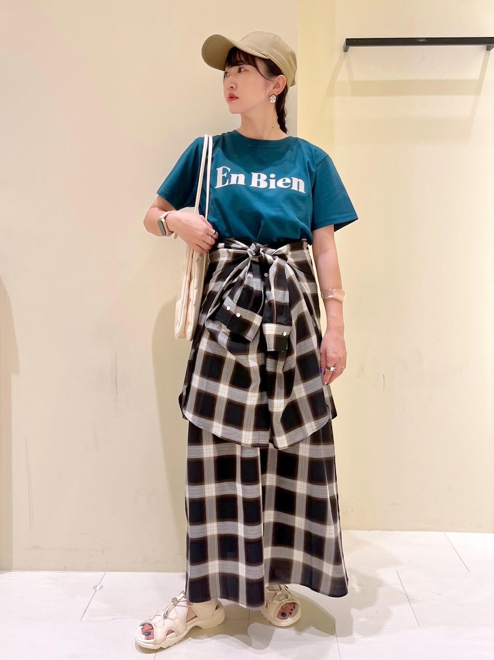 キャミワンピと同じ柄のシャツを巻きスカート風にかさねてアレンジしたコーディネート◎ ウエストマークでスタイルアップしつつ体型カバーも叶う着回しです◡̈