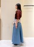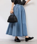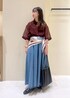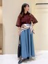 通年使えるカジュアルなデニムスカートを秋カラーでまとめたコーディネート◎ ウエストマークすることでボリュームのあるボトムスも目線を上げてスタイルアップが叶います◡̈