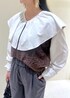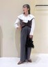 フレアカラーのブラウスとファーベストを組み合わせたコーディネート◡̈ 目線が上がり秋らしいシルエットです◎
