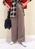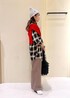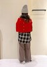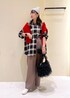秋らしいブラック×ブラウンコーデに赤のカーディガンを差し色にしたコーディネート。 ※帽子、アクセサリーは私物です