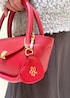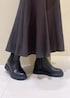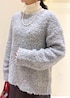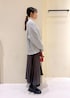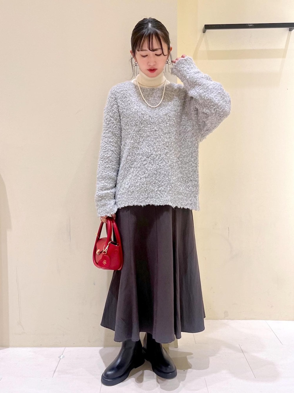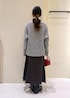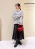 ブークレニットを主役にグレーカラーでまとめたワントーンコーデ。 赤のミニバッグを差し色に◎ ※アクセサリーは私物です