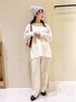 ホワイトアイテムでまとめたワントーンコーデ◎ 小物をブラウン系でまとめてひきしめました◡̈ ※アクセサリーは私物です