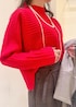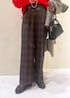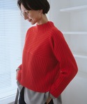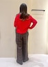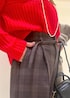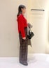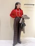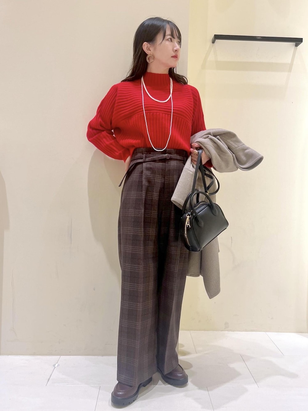 赤が目を引くカラーニットにブラウンチェックで 温かみのある冬コーデに◡̈ ※アクセサリーは私物です